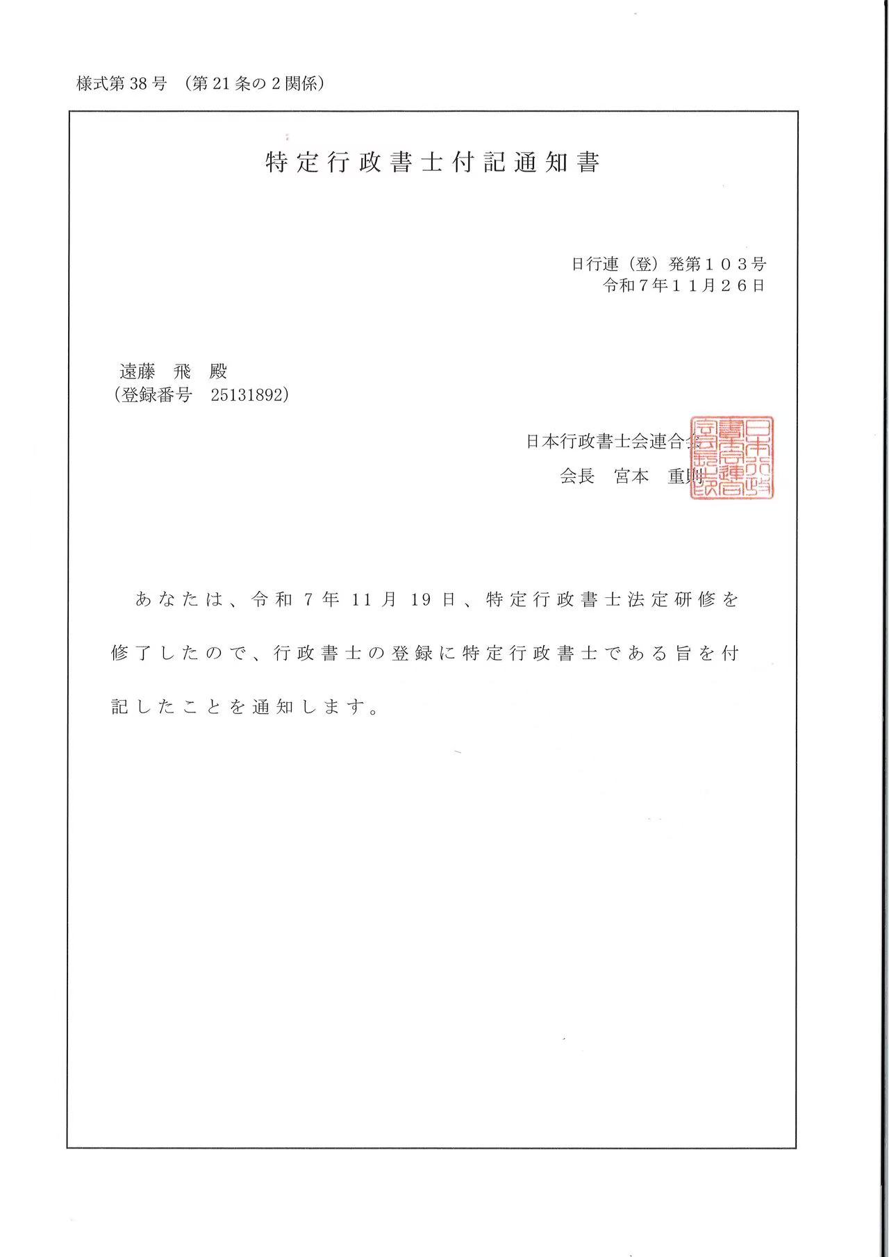 手元に届いた付記通知書を再度確認しまして、確かに付記したと明記しており、日行連の行政書士検索で確認してみると、ちゃんと特定行政書士であることも出ていますね!ホッとしました。